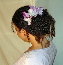 Wearing a simple flower or larger hair pin from one of the hair adornment sites listed below would be especially stunning in shorter curls.