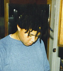 | This is when I was trying to grow my locs. My hair was orange, and I had some long braids that I'd stopped combing, so they were half dreds. I put beads on the ends, and sewed them into my hair. |
